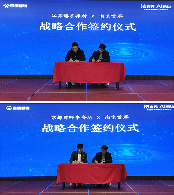 在多年的發(fā)展中,離不開廣大法律服務(wù)行業(yè)客戶的信任與支持,會上南京首屏與江蘇臻宇律所、京都律師事務(wù)所簽訂戰(zhàn)略合作協(xié)議,借助百度平臺推動律所的創(chuàng)新式營銷能力,促進法律服務(wù)行業(yè)的發(fā)展。